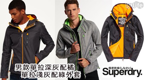Superdry極度乾燥-男款單拉深灰配橘/單拉淺灰配綠外套!